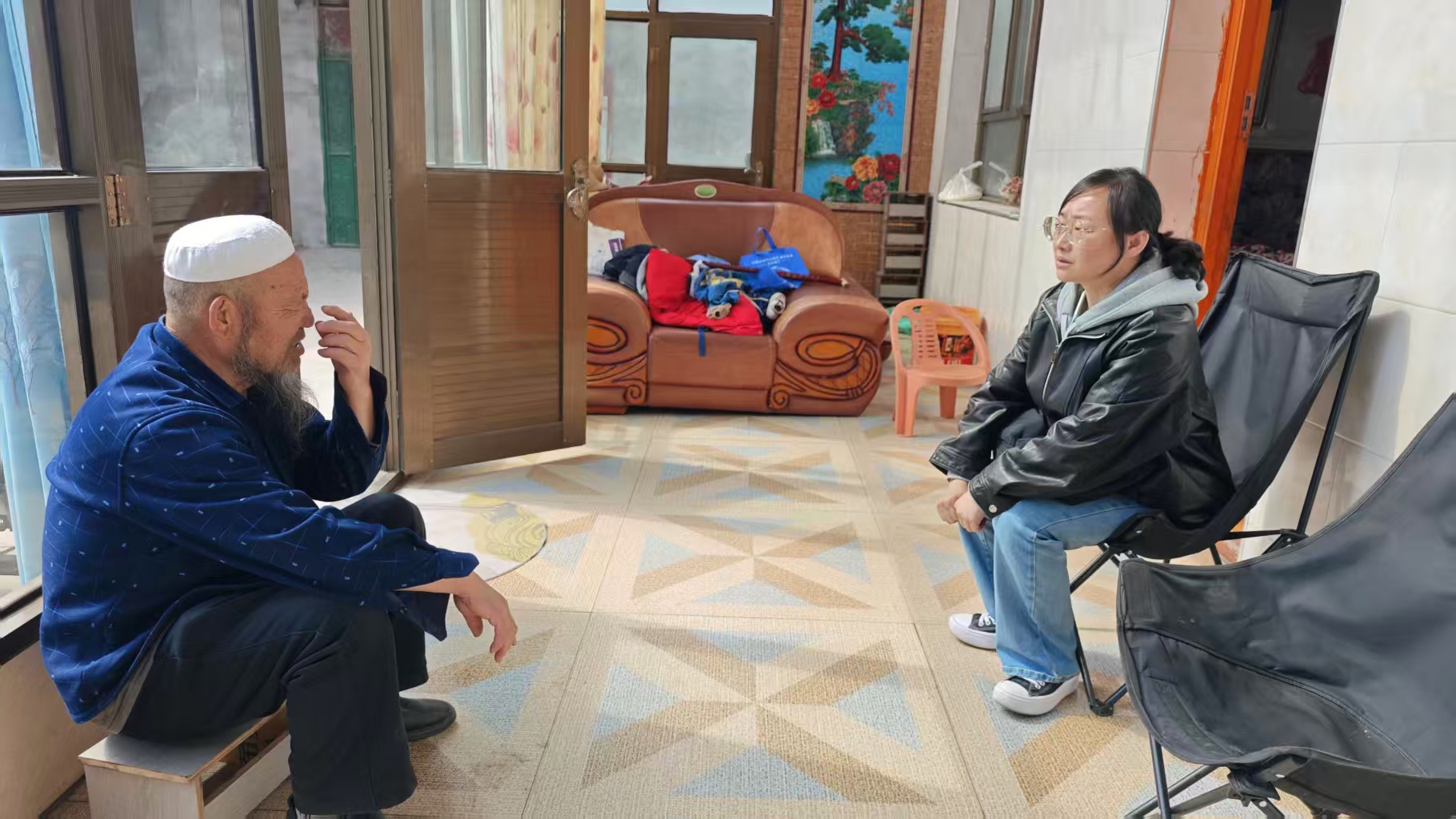 宣讲结束后,省科技馆党员干部与村“两委”干部、帮扶户代表召开座谈会,围绕结对帮扶共建工作成效展开深入交流。樊明洲副馆长对赞卜乎村村容村貌的显著变化、群众生活质量的稳步提升给予肯定,勉励村民牢牢把握惠民政策机遇,积极配合村“两委”和驻村工作队工作,聚力乡村发展,实现增产增收,让致富之路越走越宽。