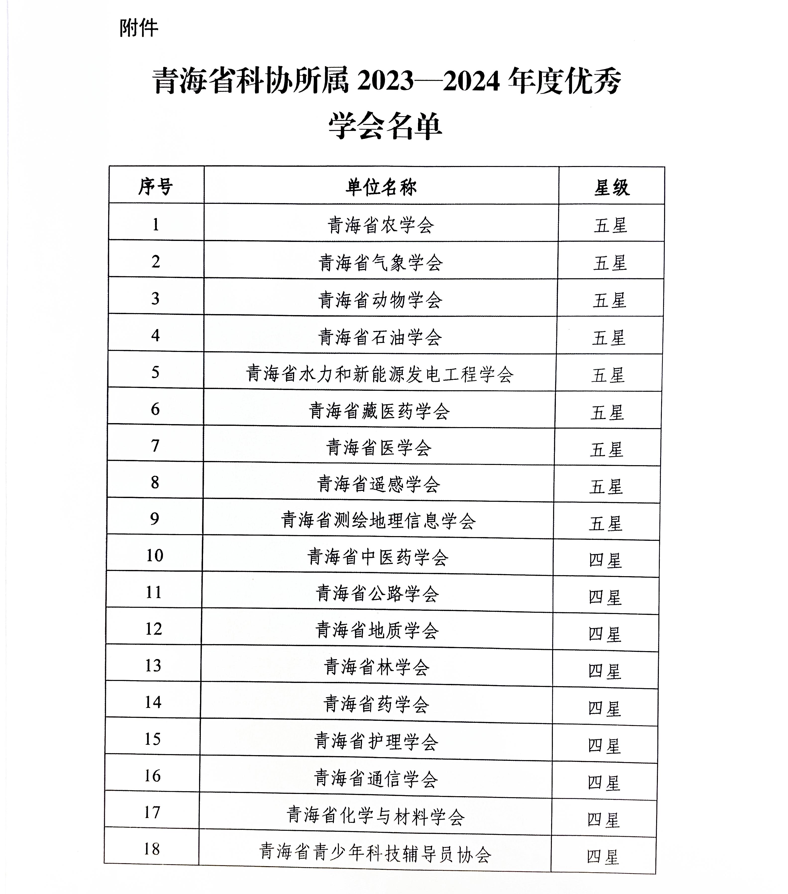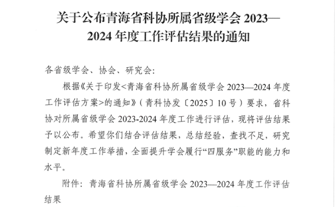 根据青海省科学技术协会《关于公布青海省科协所属省级学会2023 - 2024 年度工作评估结果的通知》,青海省青少年科技辅导员协会凭借良好的工作表现,在本次评估中荣获“四星学会”称号。