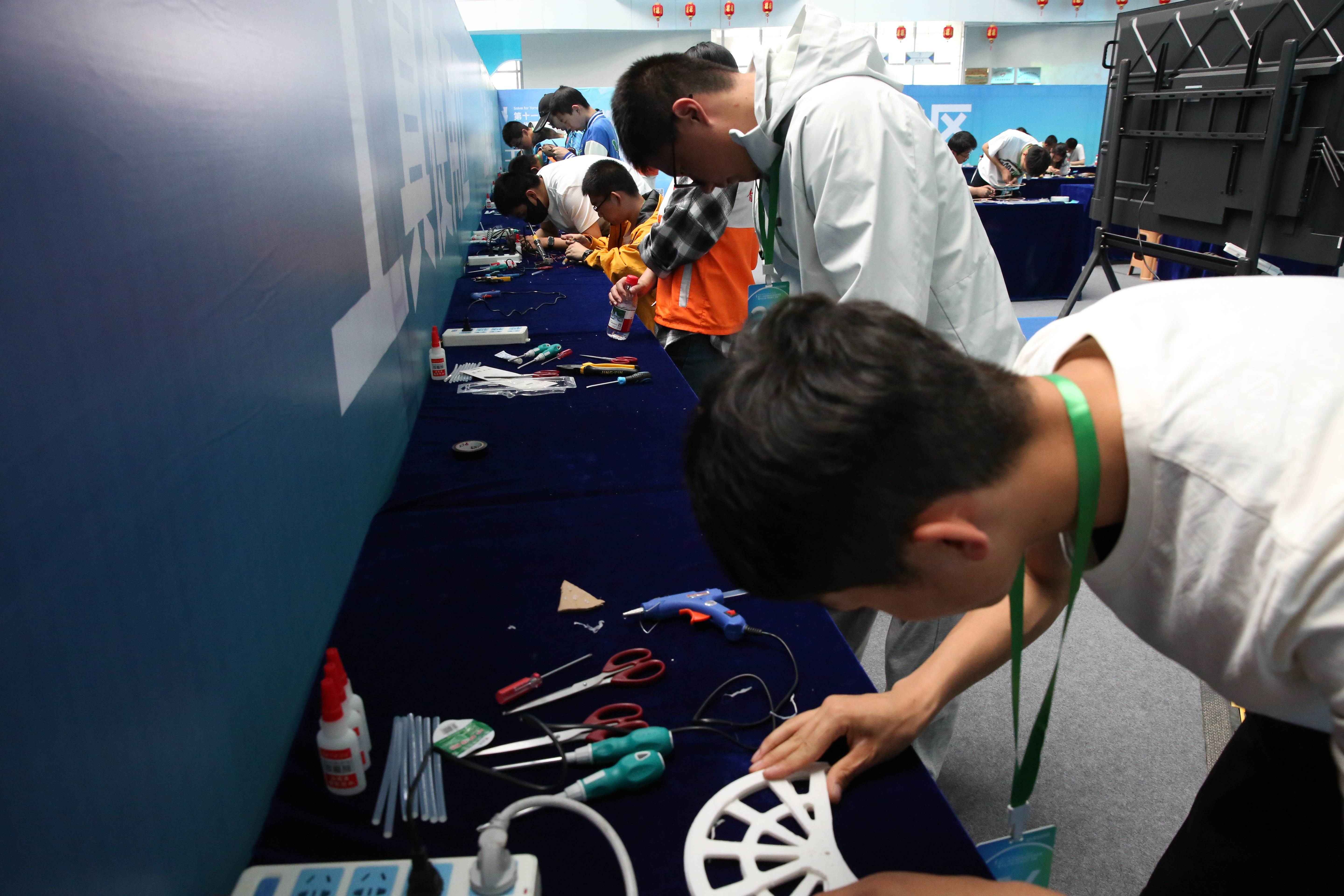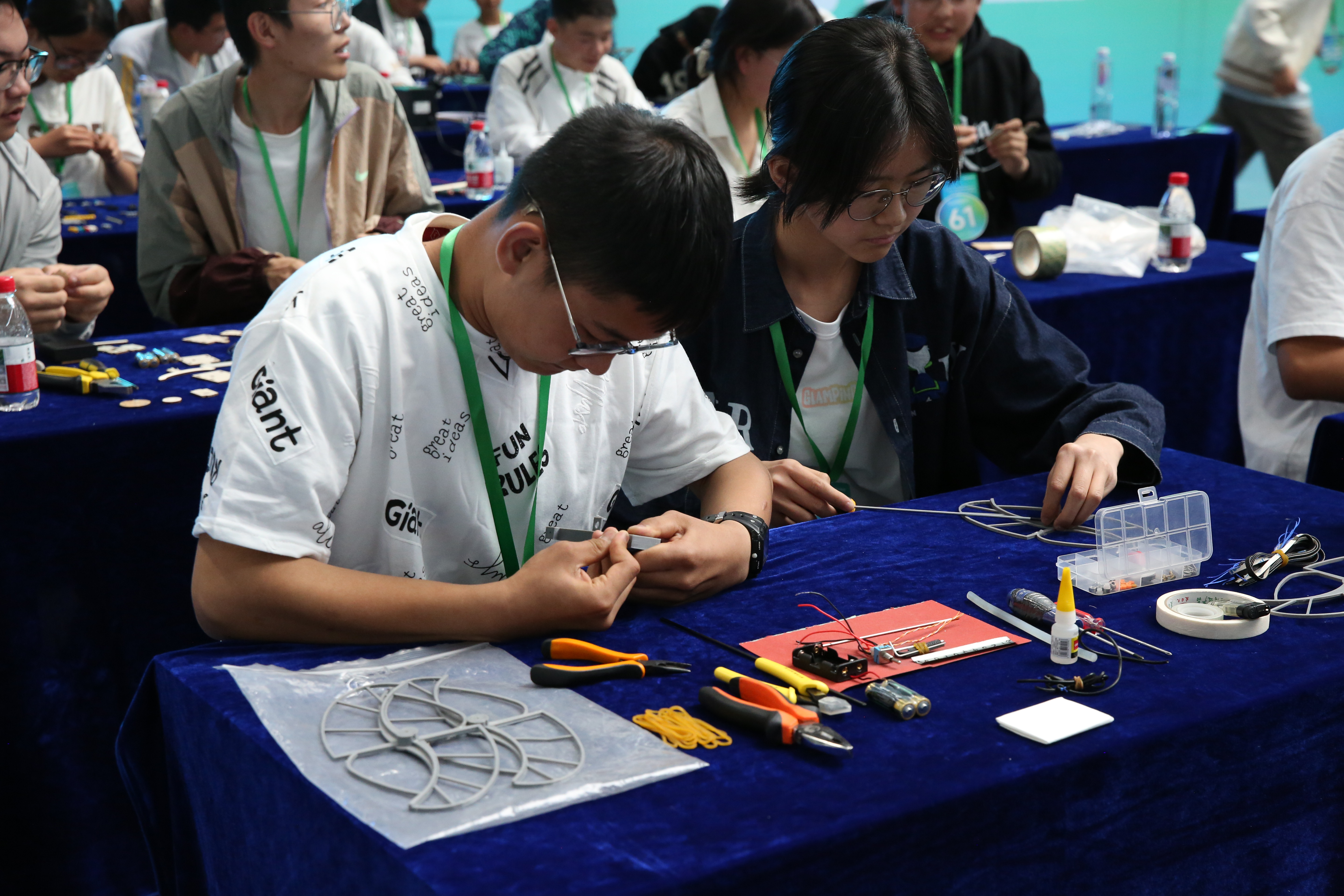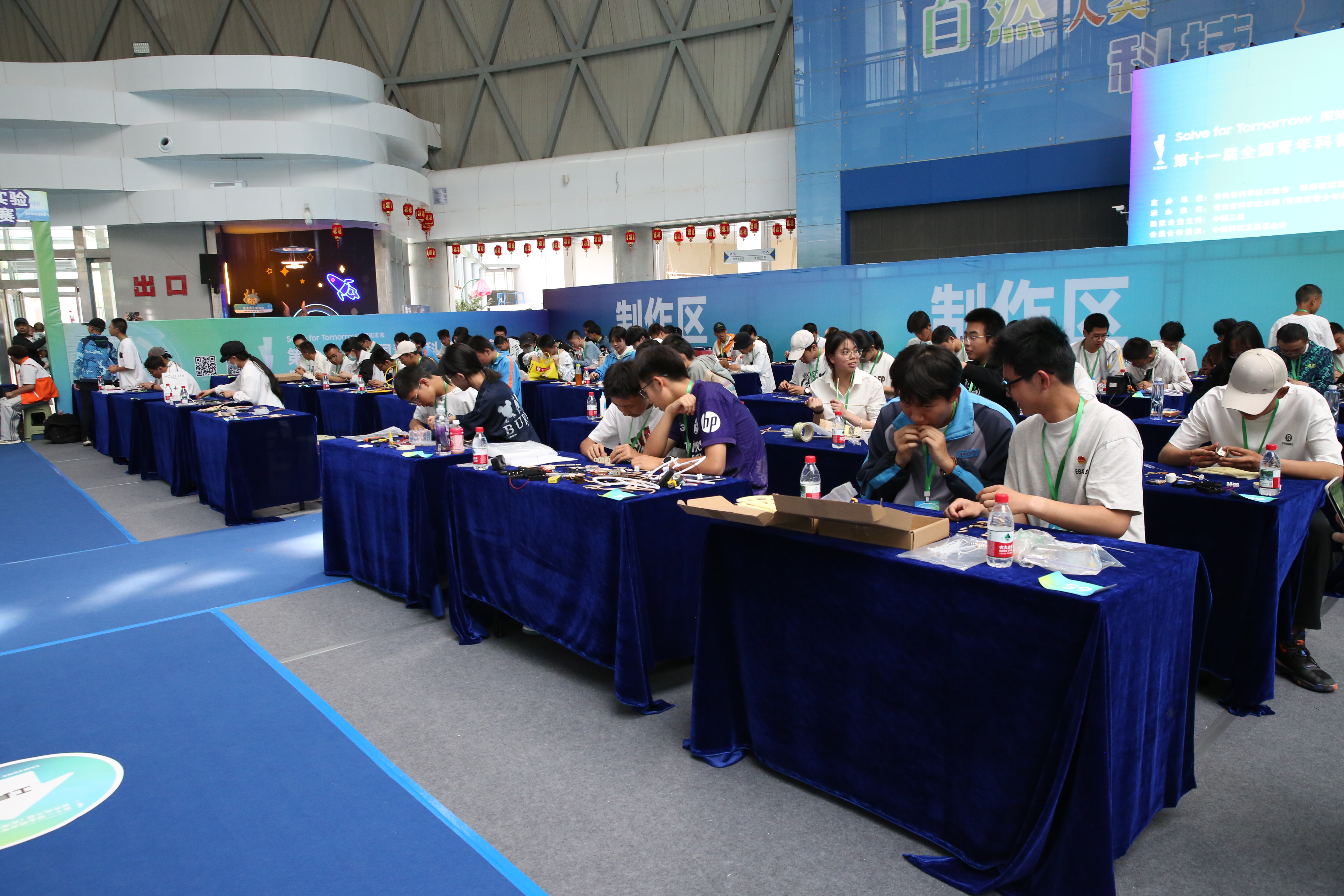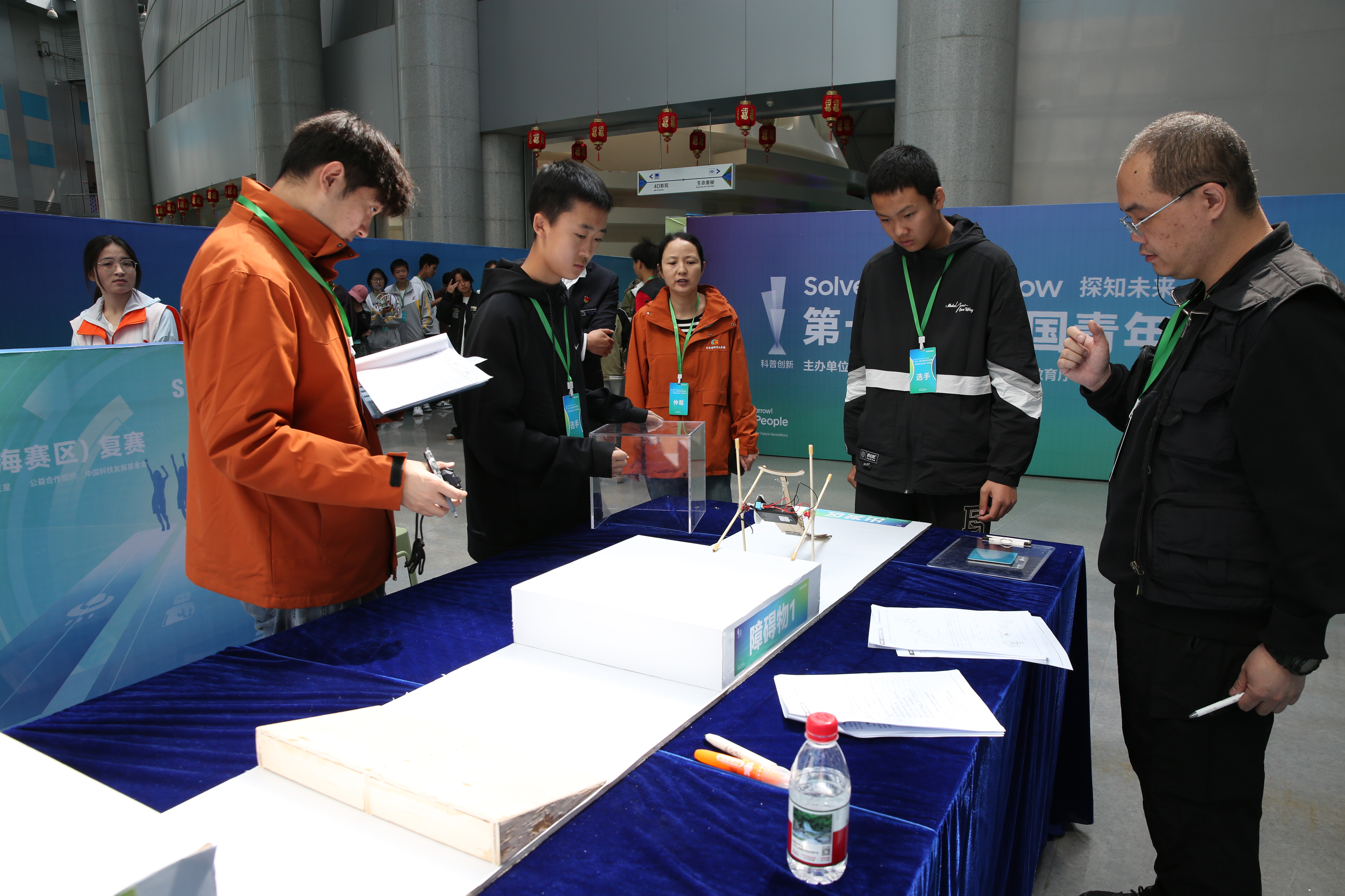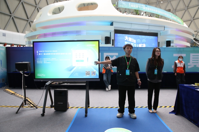 创意作品项目赛道中,“人机协作”(大学组)、“科技改变生活”(中学组)两个项目按现场演示、作品展示和问辩方式三个环节依次进行,选手们从身边问题出发,提出解决方案,设计系统模型进行作品创作,展现出我省青年学生优秀的创新创造能力和激扬的青春风采。科普实验项目赛道分现场制作和现场评审两环节,其中,“未来太空车”项目是以太空探索为背景,利用指定动力系统,自选材料制作装置完成指定任务的创意实验设计,现场参赛队伍充分发挥创造力,共同制作“太空车”,体现出了良好的团队协作精神。