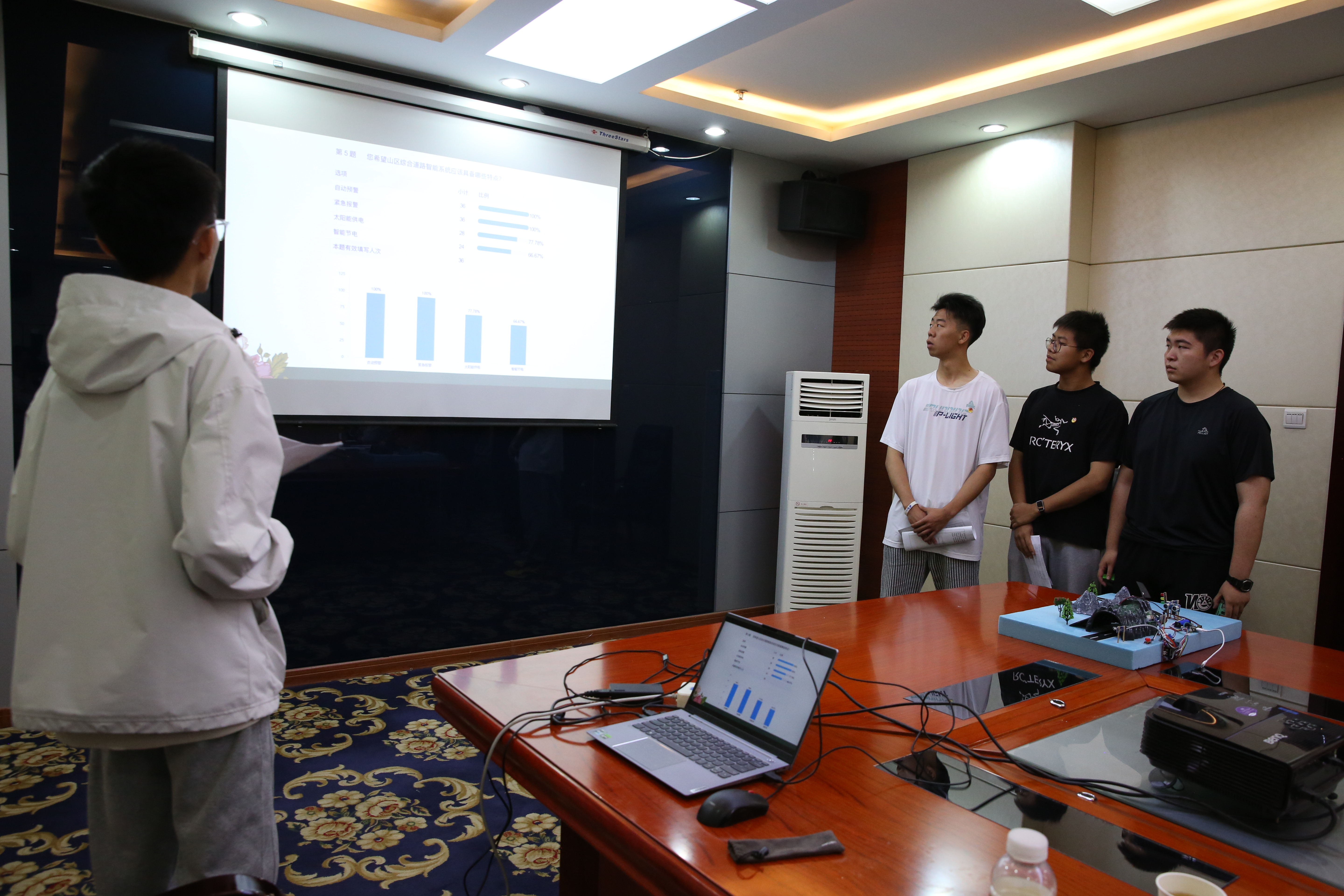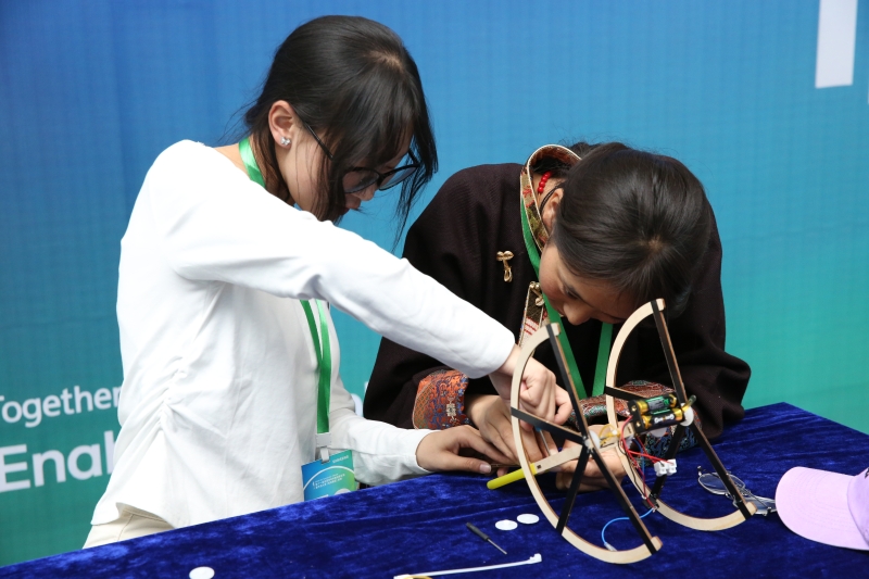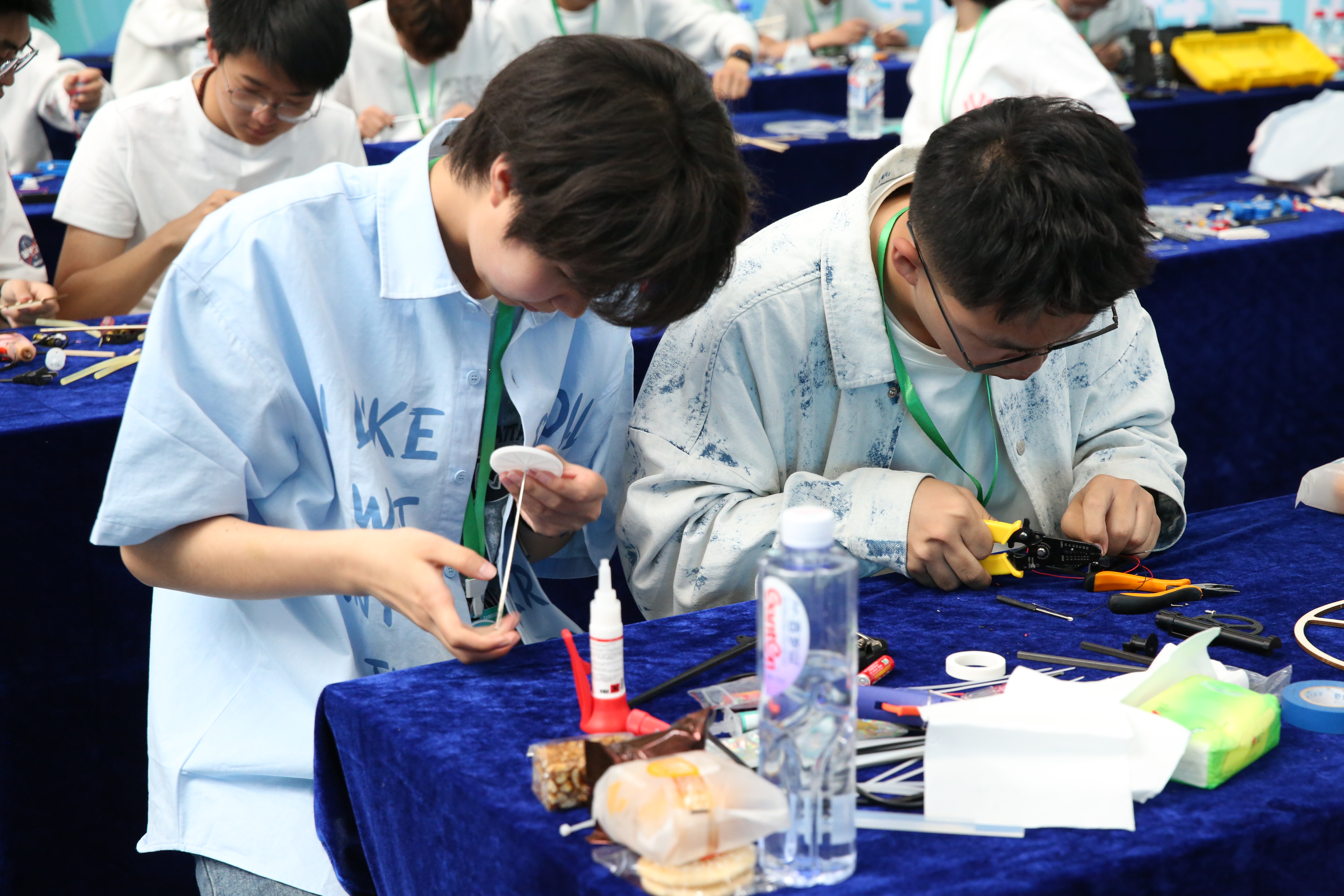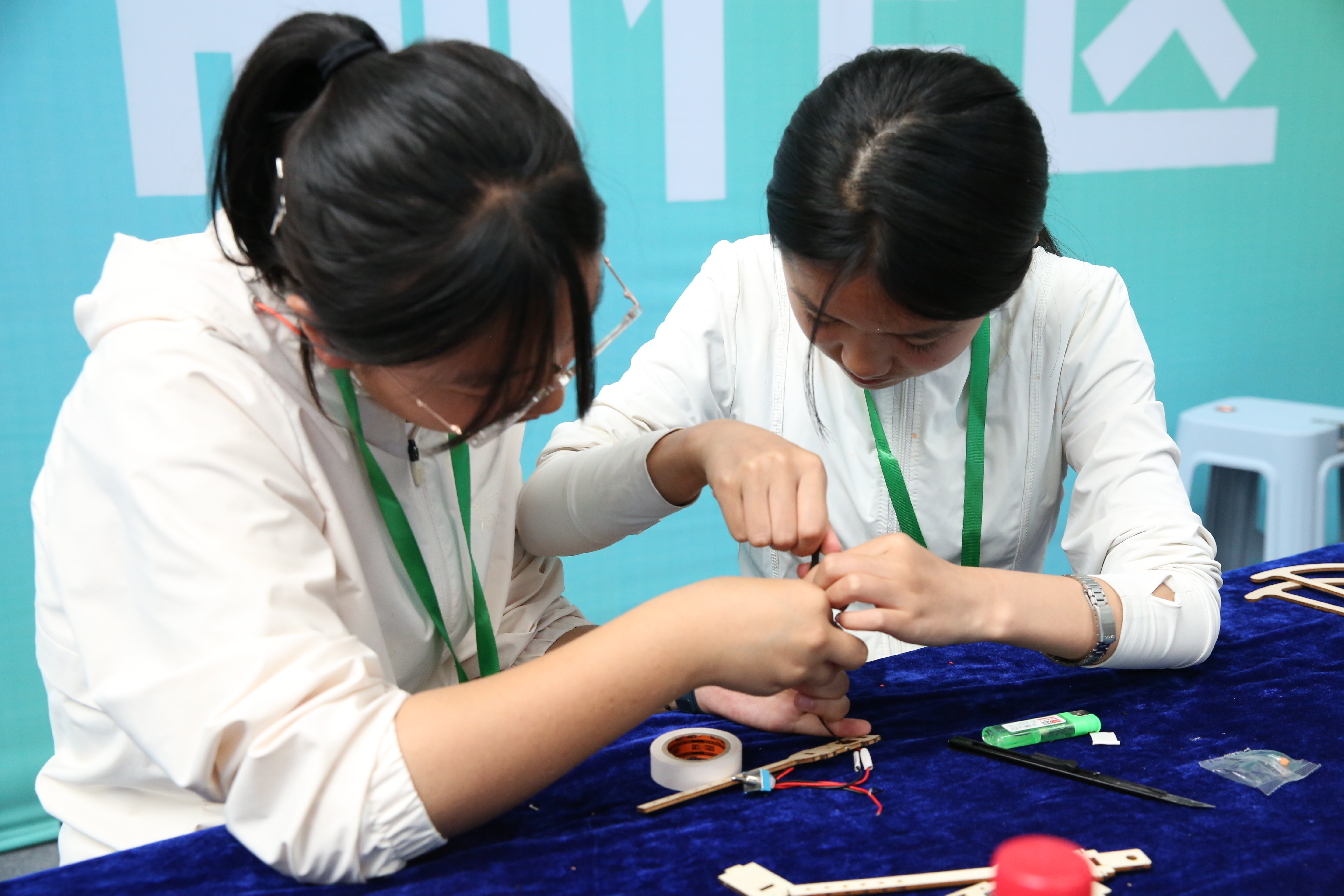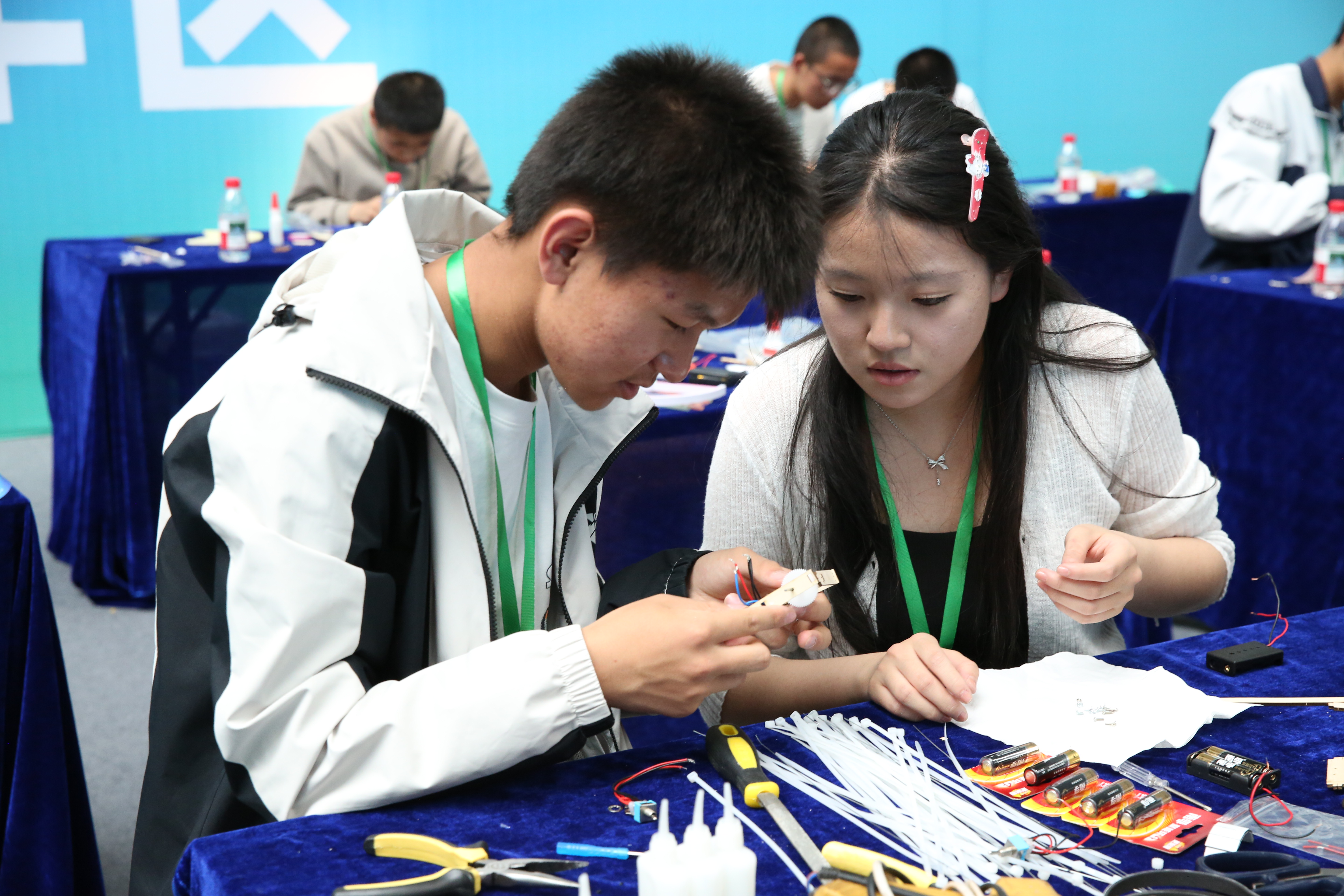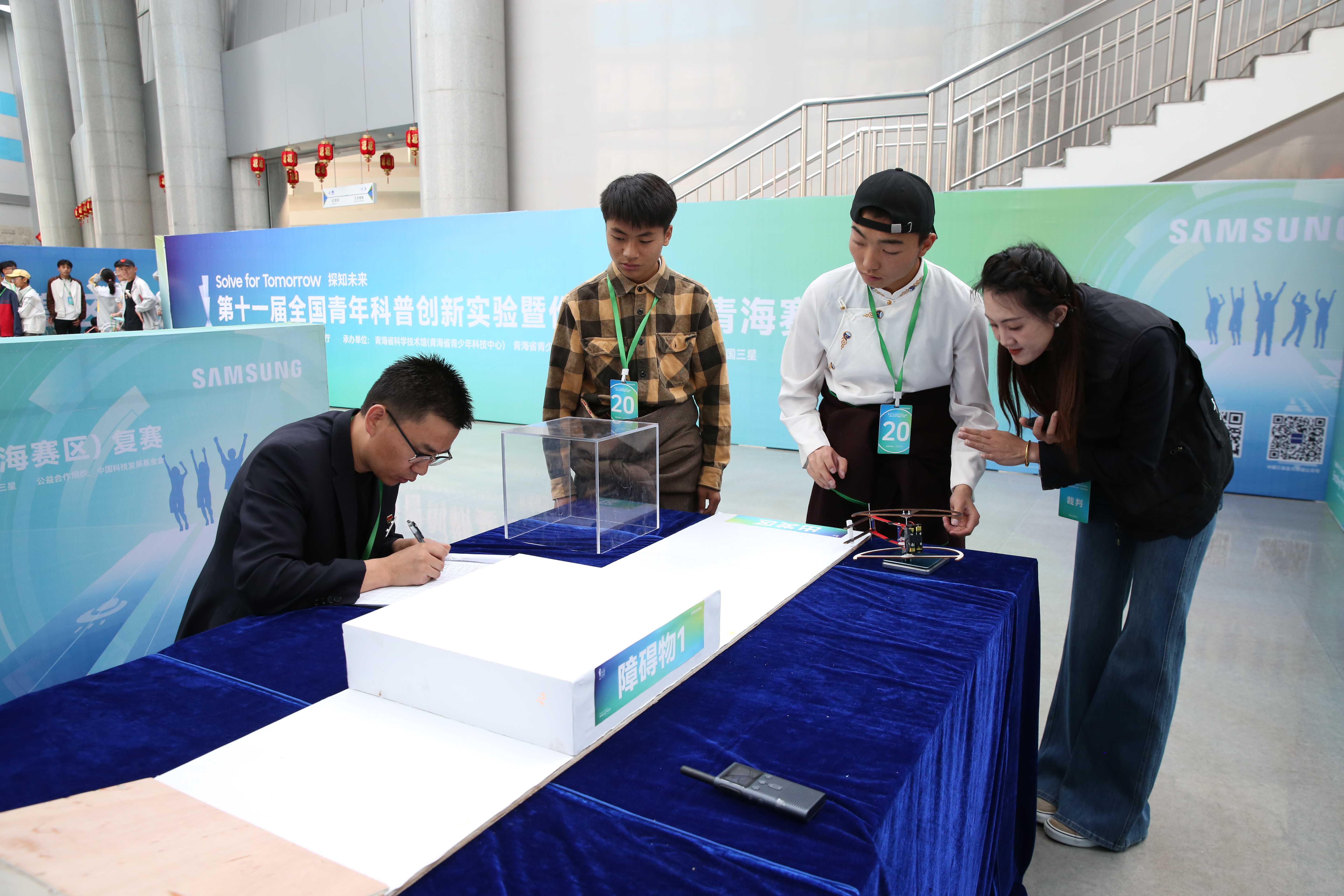 创意作品项目赛道中,“人机协作”(大学组)、“科技改变生活”(中学组)两个项目按现场演示、作品展示和问辩方式三个环节依次进行,选手们从身边问题出发,提出解决方案,设计系统模型进行作品创作,展现出我省青年学生优秀的创新创造能力和激扬的青春风采。科普实验项目赛道分现场制作和现场评审两环节,其中,“未来太空车”项目是以太空探索为背景,利用指定动力系统,自选材料制作装置完成指定任务的创意实验设计,现场参赛队伍充分发挥创造力,共同制作“太空车”,体现出了良好的团队协作精神。